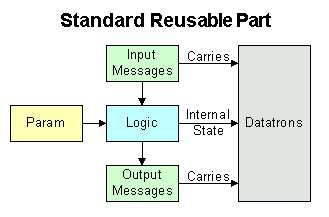 Dynamic Logic is hard. The above makes it much, much easier because we only have to solve the Logic element, given the standard context. The main reason Artificial Intelligence (AI) has proceeded so slowly is, IMHO, is it is attempting to solve too large and too many problems. AI doesn't have the luxury of solving something easy, because it doesn't have a mature, complete domain neutral infrastructure that causes the problem to be solved to be very small and simple. All we have to do here is have Configurable Logic that responds appropriately to Input Messages that are mere standard data structures. There is no domain dependent work. If effectors are needed, they can be done with output Messages. Experience shows the input to usually be a very small number of datums. We have simplicity, simplicity, simplicity due to reuse, reuse, reuse.