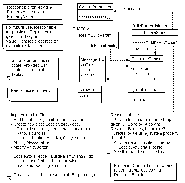 The largest problem was this approach assumed one locale per JVM process. This is very limiting. For example a developer might be using the Bean Assembler Editor in English but displaying Japanese windows. Or in the future the product may have to be multi-lingual for various unanticipated reasons.