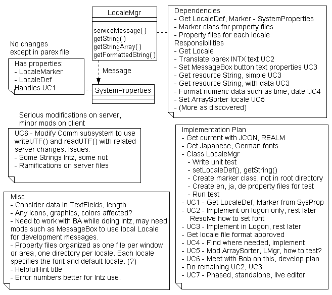 The Responsibilities and Implementation Plan clearly show where each Use Case is resolved. This makes the model very understandable and easily implementable. All this info is not hidden in the developer's brain - It's there for all to see and understand. In this case, the model served as the key hand-off document to allow other developers to complete and use LocaleMgr after the Initial Implementation. Without a good model this hand-off would have been awkward.
