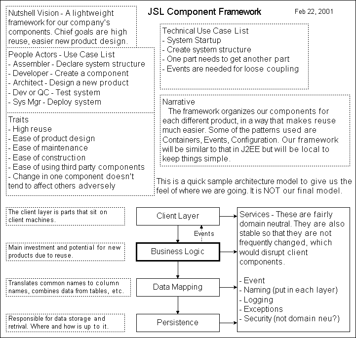 PROBLEM - Overall our products are doing well in the marketplace but we know we can do better. Our products all use J2EE. Most of our J2EE components are business logic. There are hundreds of them. They have become a subsystem in themselves, but they are only slightly organized. We are finding it harder than we'd like to get them to work together cohesively. Our designs feel awkward, kinda forced, and are usually the result of bottom up organic growth.